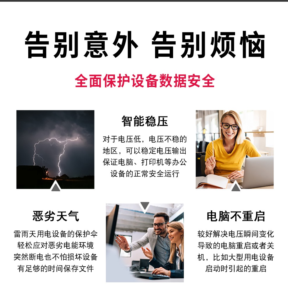 3.豐富的通訊和監控:控制面板一目了然,能將UPS運轉狀況,負載情況,電池供電狀況等清晰顯示,隨時掌握UPS運行參 數。