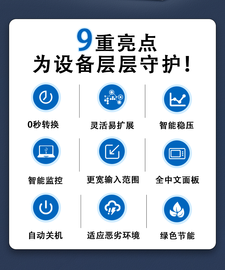 2.高可靠性、采用先進的DSP數字化控制技術,產品性能更優異,品質更穩定,帶載和過載能力強,兼容性好