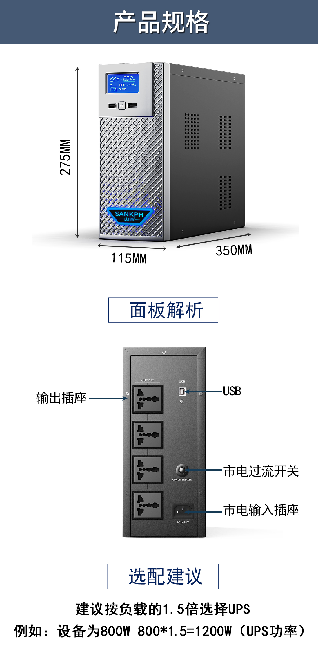 【品 牌】山埔 【型 號(hào)】SP2000 【功 率】2KVA1200W