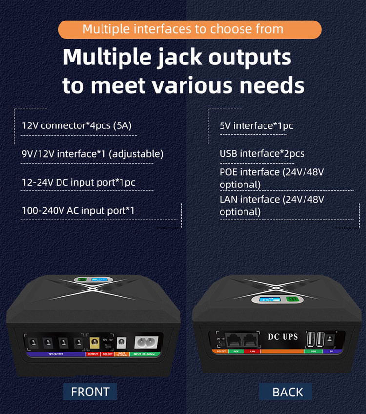 5V / 9V / 12V / USB / Poe / Lan outer port