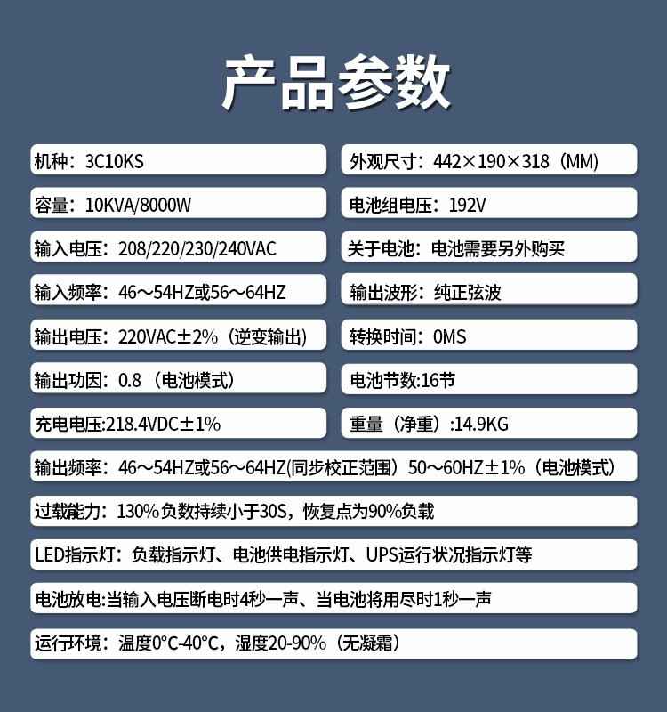 【ups尺寸】:442*190*318(毫米) 需外接電池192V
