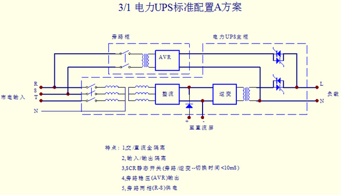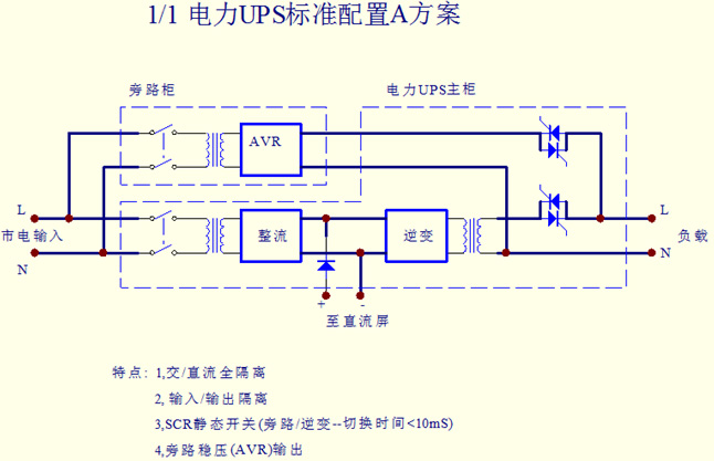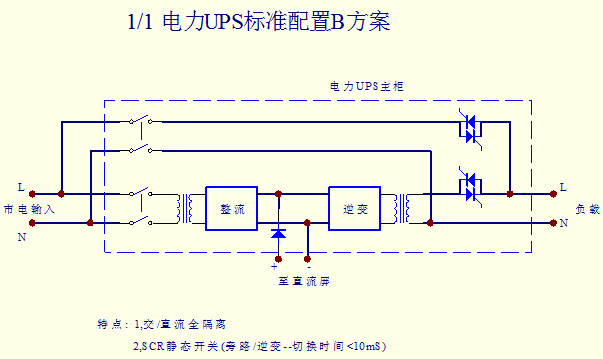 5、特殊的靜態開關設計,具備真正的零中斷運作,因為輸出具有隔離變壓器,可以實現電流隔離,在此基礎上設計的靜態開關電路,保證任何狀態轉換下,輸出電壓均無中斷時間,是真正意義的零中斷,保護了用戶負載正常安全的工作。